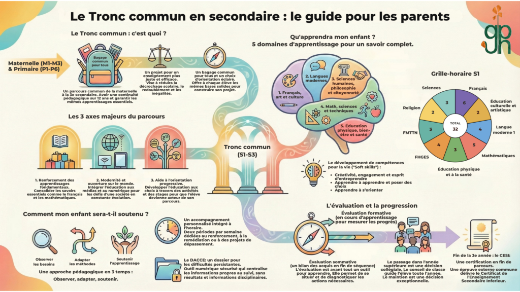 L’école des devoirs, notre troisième pilier pédagogique du Tronc commun, est organisée une fois par semaine de 14 h 30 à 16 h 10. La participation s’effectue sur l’entièreté du créneau horaire.